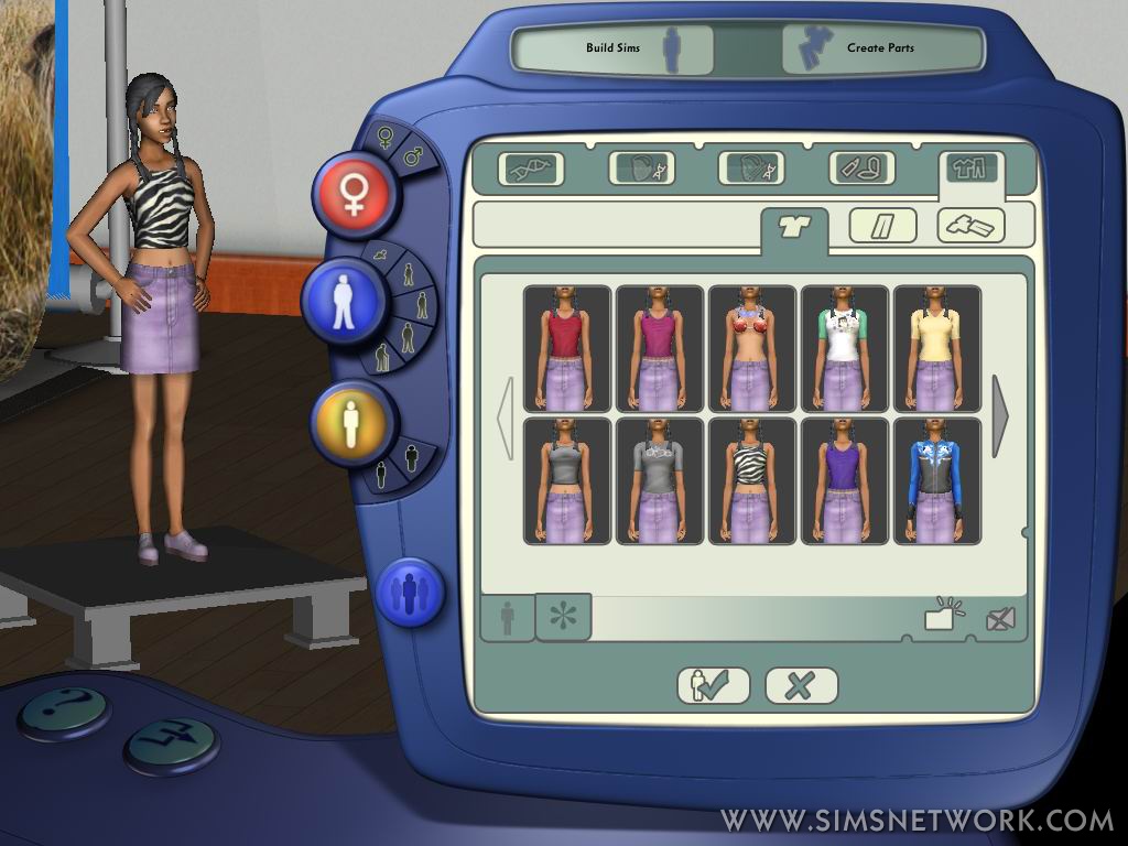 Next up, new images from the game. We have been working hard on delivering the hippest and coolest Sims you have ever seen in The Sims 2. This week, the spotlight is on Sim fashion. Check out the latest in au courant attire for your Sims in The Sims 2: