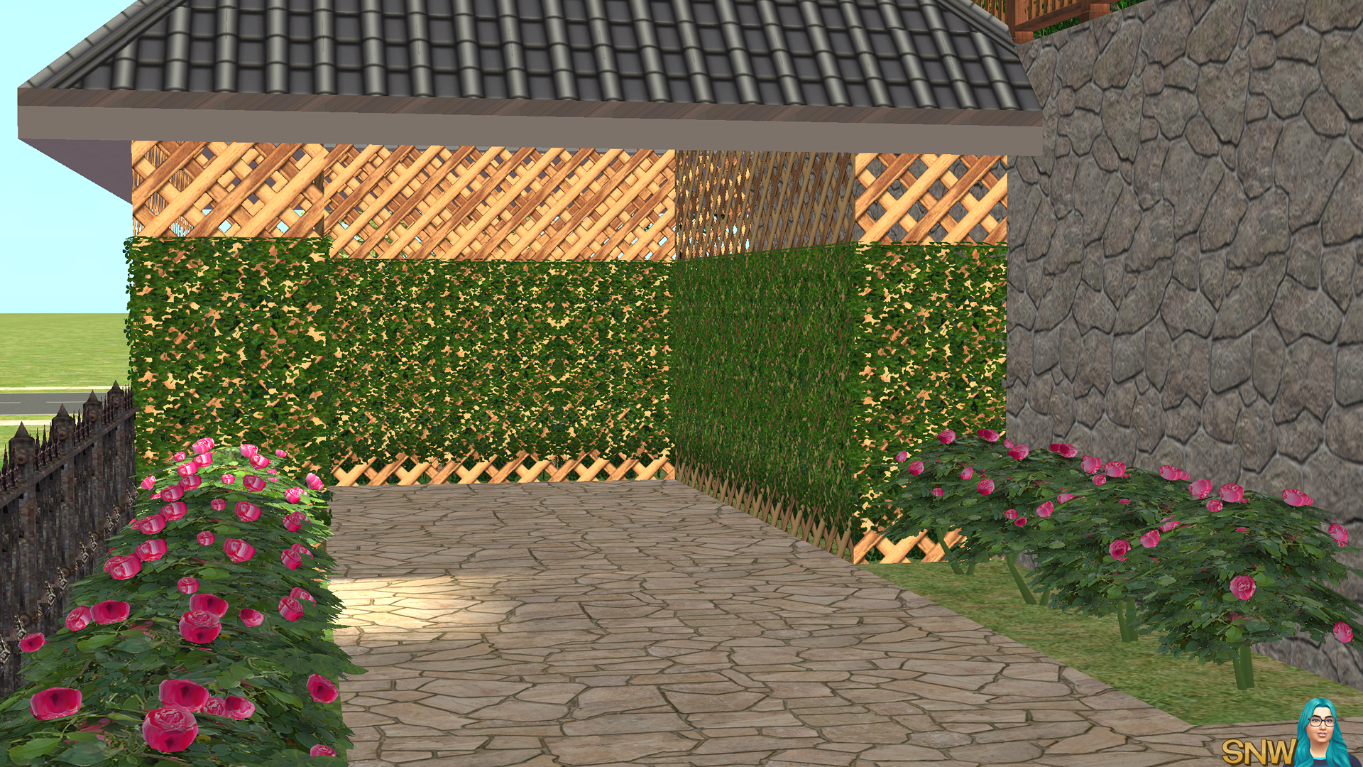 I especially love the carport/driveway, the quirky stairs leading up the house, and a trellis like area on the right side of the lot. I loved how this lot was just different from what I usually built.