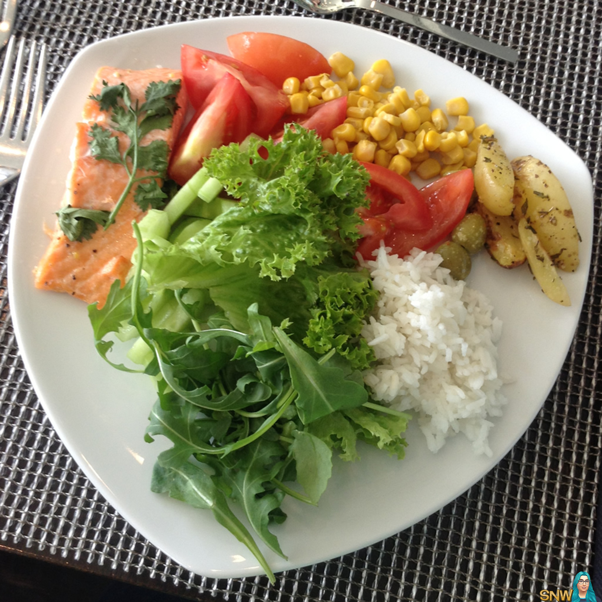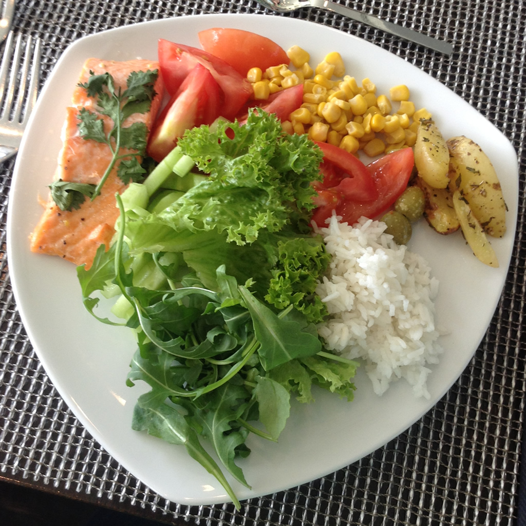 Gelukkig was lunch een buffet, dus we konden pakken wat we wilden hebben. En ik heb gewoon een lading groenten gepakt, wat rijst en een stukje zalm. Het was zo lekker!