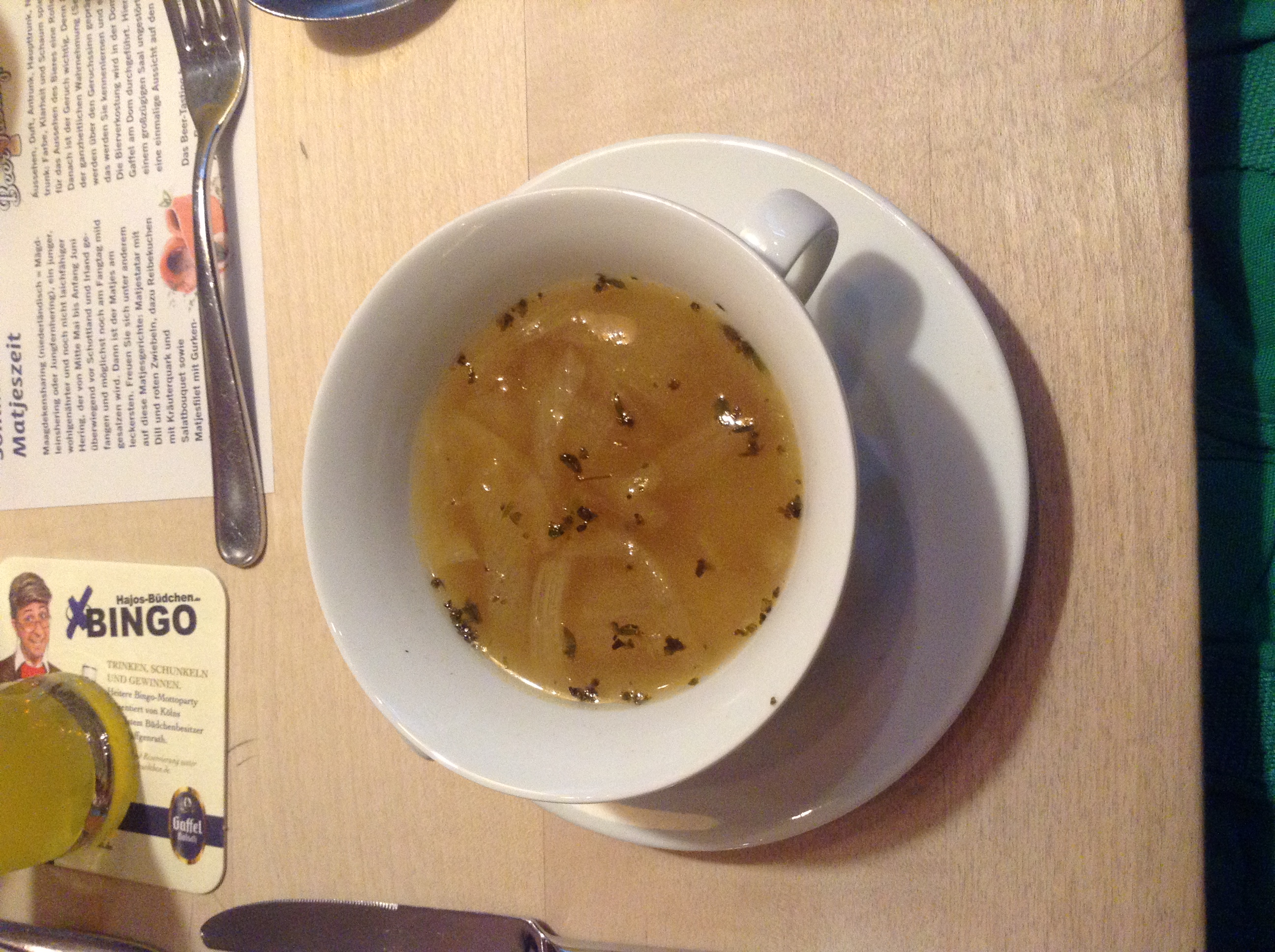 Dit was dus mijn voorgerecht. Uiensoep. Ik kreeg in eerste instantie de verkeerde versie, met brood erin. Maar dat werd aangepast. Het was zo lekker!