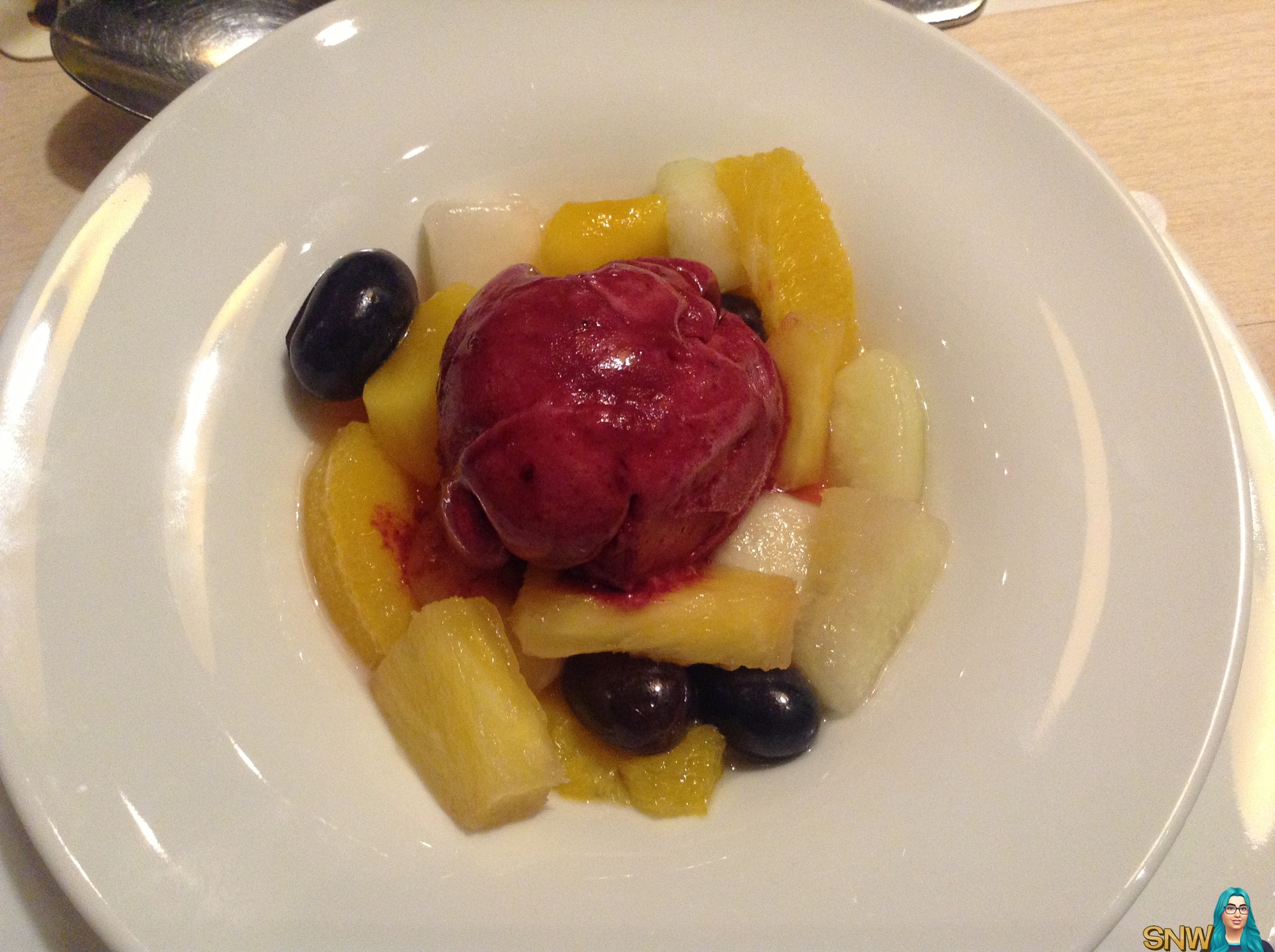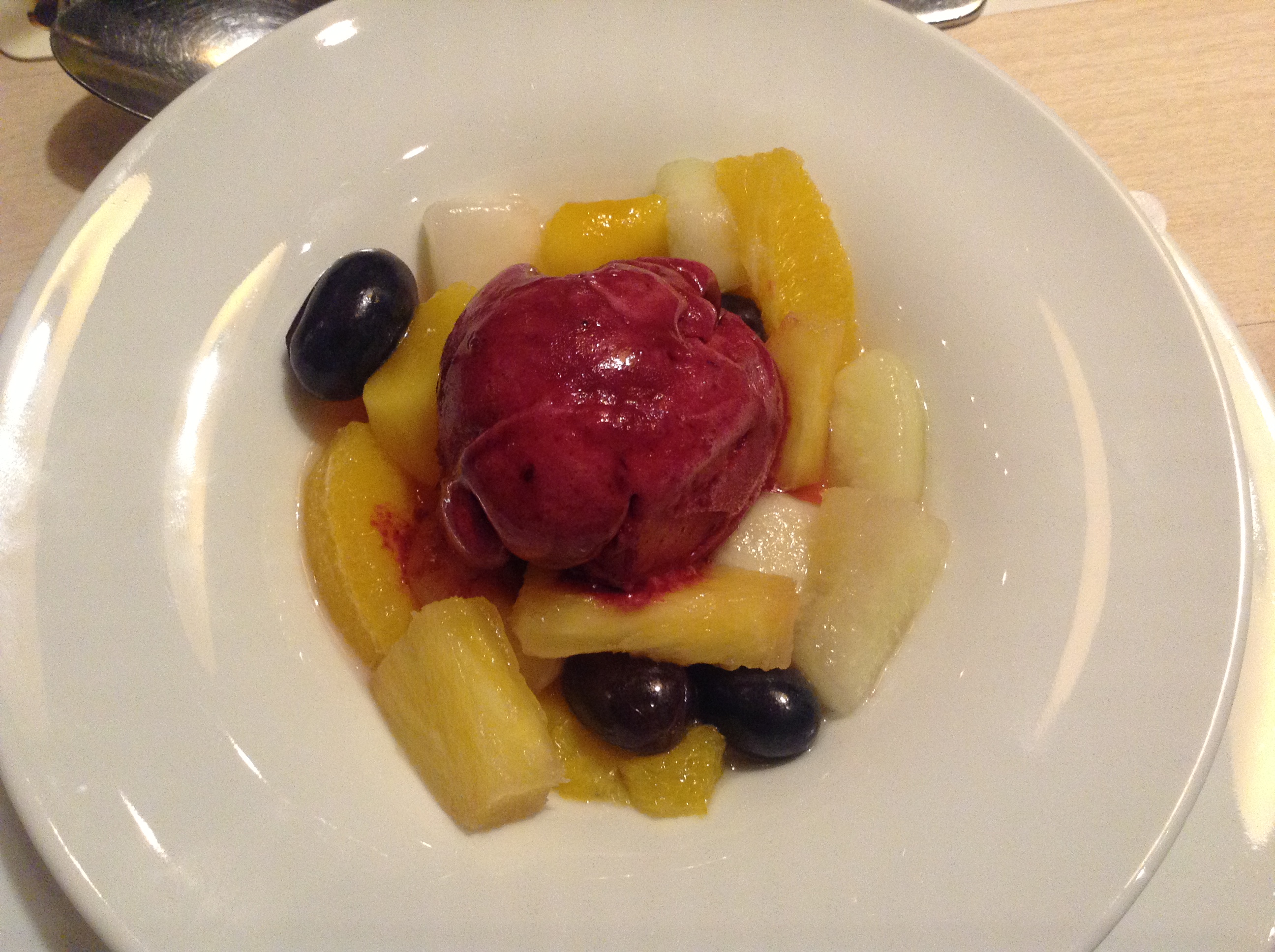 En mijn nagerecht! De rest had apfelstrudel, waar ik wel wat jaloers op was. Maar dit is beter zo hahaha! Het nagerecht was zo lekker. Maar eigenlijk was al het eten wel lekker.