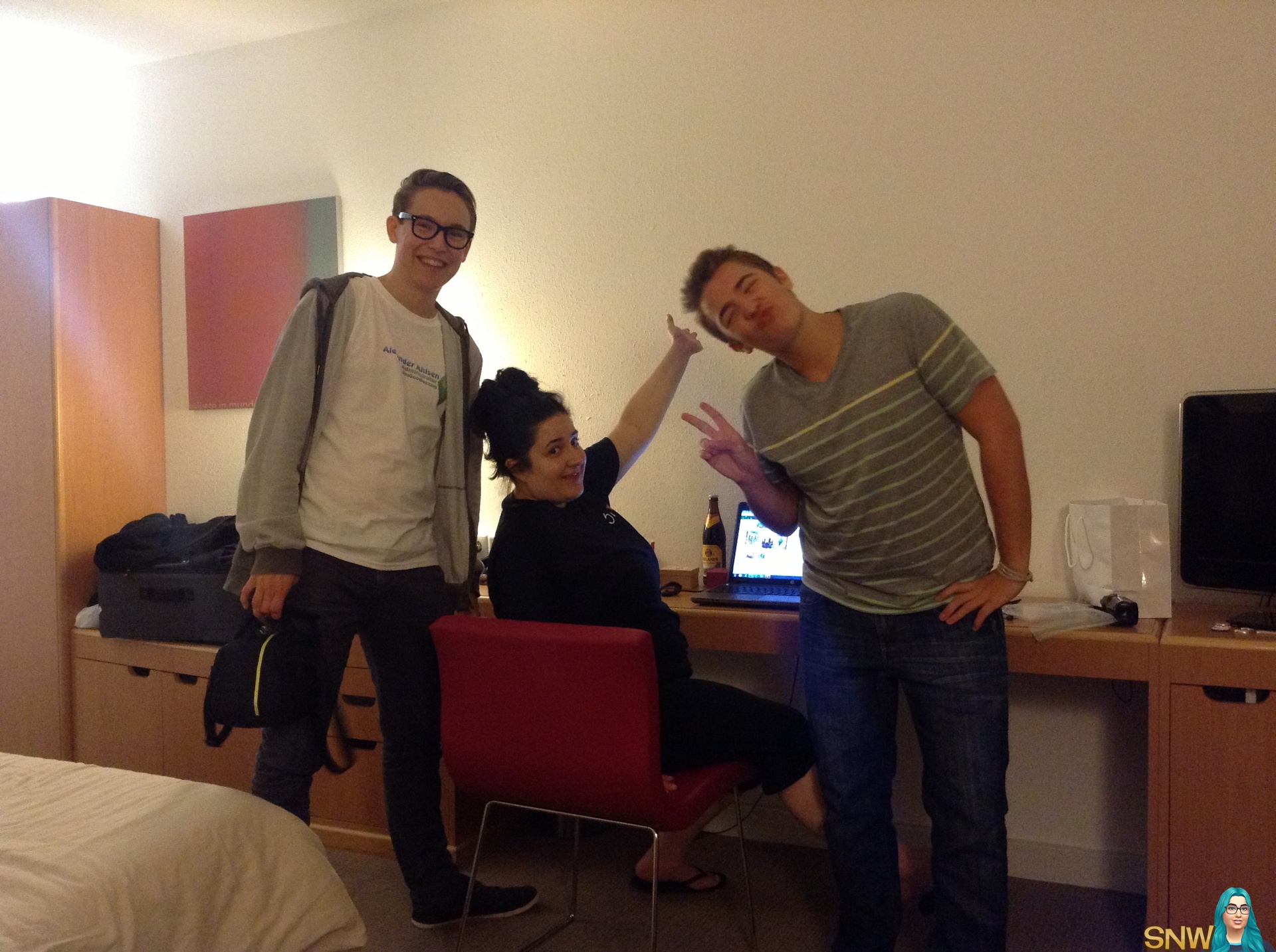 Op de een of andere manier eindigden weer in Alexis haar kamer. Ik weet niet meer hoelang we zijn gebleven, maar ik weet nog wel dat ik een vlog met Greg van SimCookie heb opgenomen. En dat vlog is intussen ook al online, ga hierheen om het te kijken!
